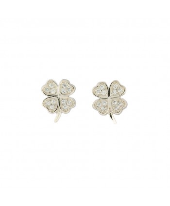 Orecchini a lobo Faga Collection in argento 925 a forma di quadrifoglio con zirconi bianchi.