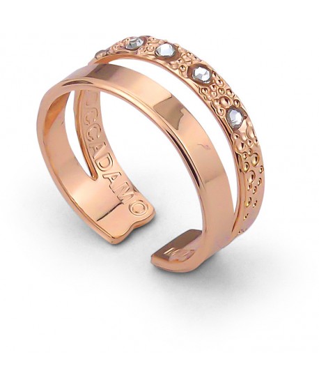 Anello Doppia Fascia Placcato Oro Rosa Dall'Effetto Diamantato E Cristalli Swarovski Crystal. Gioiello Realizzato In Bronzo, Misura: Regolabile Da 13 A 19