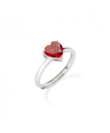 Anello in AG925 e zircone rosso - Rodio - (Mis.2 10/14, Mis.3 16/20 - cuore Ø 6mm)