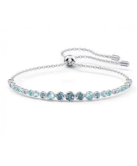 Bracciale da donna Swarovski, collezione Emily, placcato rodio con cordino regolabile, cristalli azzurri con forma circolare che aumenta verso il centro.
