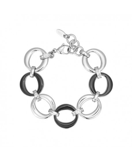 Bracciale da donna 2Jewels, collezione First Lady, in acciaio con anelli bicolore: silver e nero con elementi di congiunzione ricoperti con zirconi bianchi.
