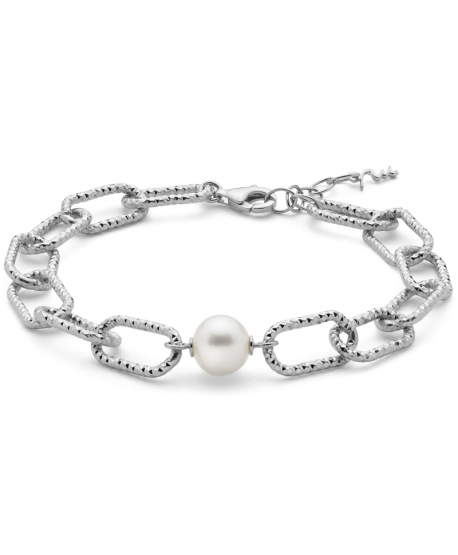 Bracciale Miluna, collezione Miss Italia 2020, in argento 925 con maglia a catena da 16 mm diamantata e perla coltivata bianca.