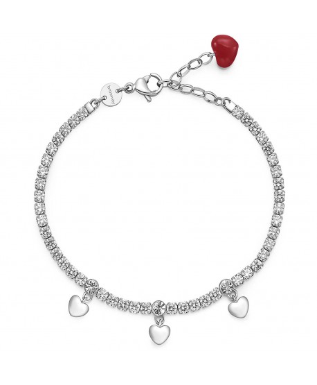 Bracciale Brosway, collezione Desideri, in acciaio con zirconi bianchi e cuori.