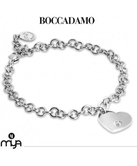 Bracciale Rodiato Dalla Catena Ovale, Con Cuore Pendente E Zircone Bianco.