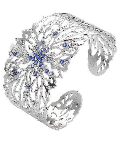 Bracciale Rodiato Con Fascia Realizzato In Bronzo Con Cristalli Swarovski E Zaffiro. Misura: Regolabile