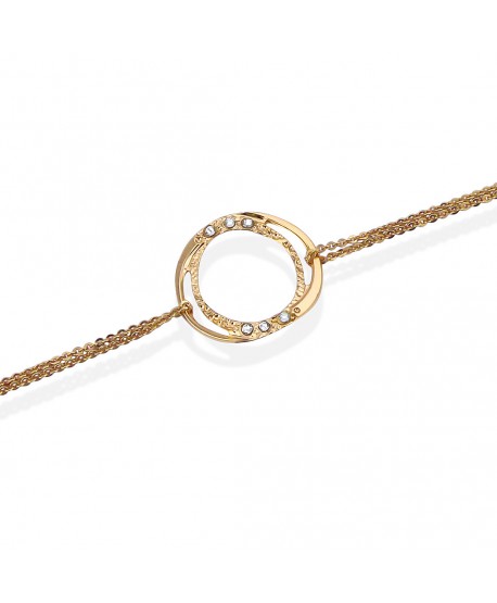 Bracciale Doppio Filo Placcato Oro Giallo Con Elemento Decorativo Circolare Dall'Effetto Diamantato E Cristalli Swarovski Crystal.