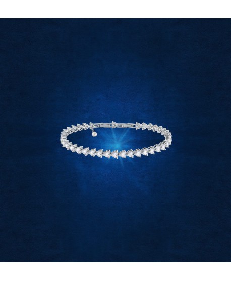 Bracciale tennis Chiara Ferragni in Rodio con zirconi bianchi a forma di cuore orizzontali.