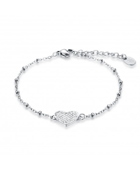 Bracciale Kiara della collezione Basik Chic modello tennis in acciaio con zirconi bianchi e cuoricino centrale.