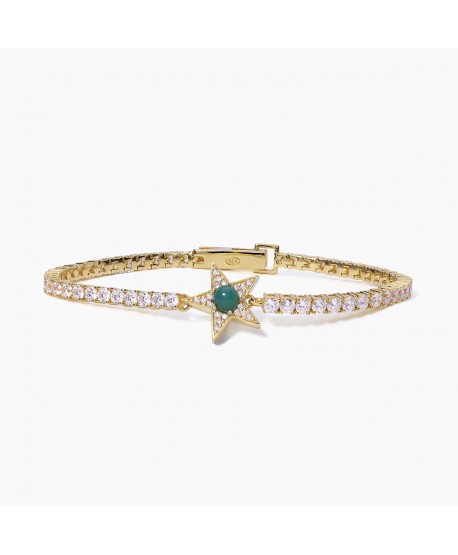 Bracciale argento 925/°°° dorato con agata verde Ø 4 mm e zirconi bianchi Ø2.5 mm., misura S lunghezza cm 16