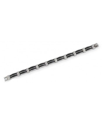 Bracciale da uomo Marlù, collezione Man Class, in acciaio con ancora in acciaio ed onice nero o legno.