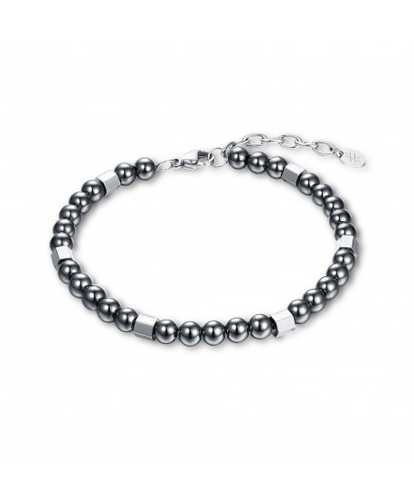 Bracciale da uomo Marlù Collezione Man Class in acciaio con cubetti e sfere in acciaio brunito ed ematite. Chiusura con tag logata e doppio moschettone.