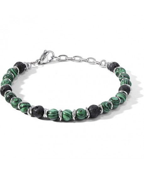Bracciale in Acciaio, malachite verde e pietra nera lavica