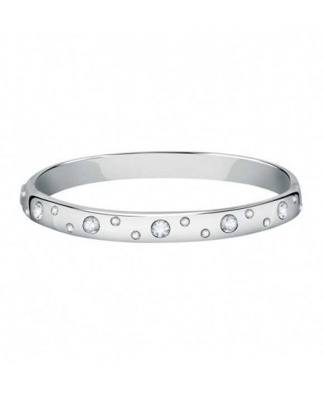 Bracciale rigido da donna morellato, collezione poetica, in acciaio anallergico rodiato con cristalli bianchi. Dimensioni: 60mm.