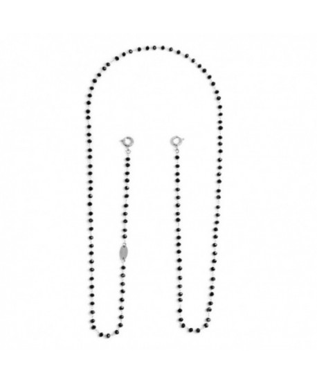 Catena porta occhiali in acciaio con cristalli neri sfaccettati 3 mm, lunghezza totale 69,5 cm. Collezione: ACS01 Materiali: acciaio, cristalli neri sfacettati