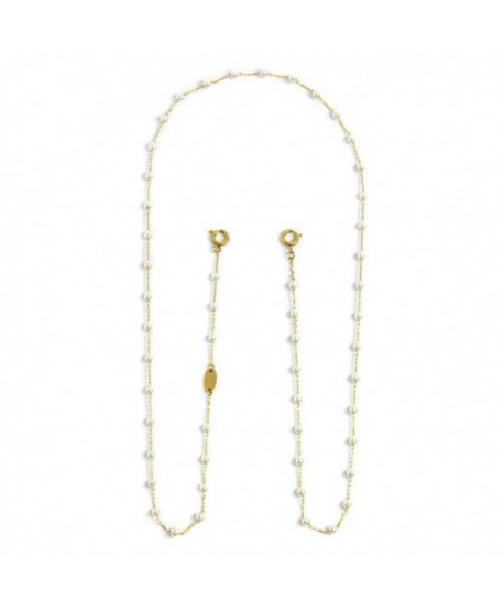 Catena porta occhiali in acciaio con pvd oro con perle con diametro 3,30 mm, lunghezza totale 70 cm. Collezione: ACCESSORI 01 Materiali: acciaio con pvd oro, perle