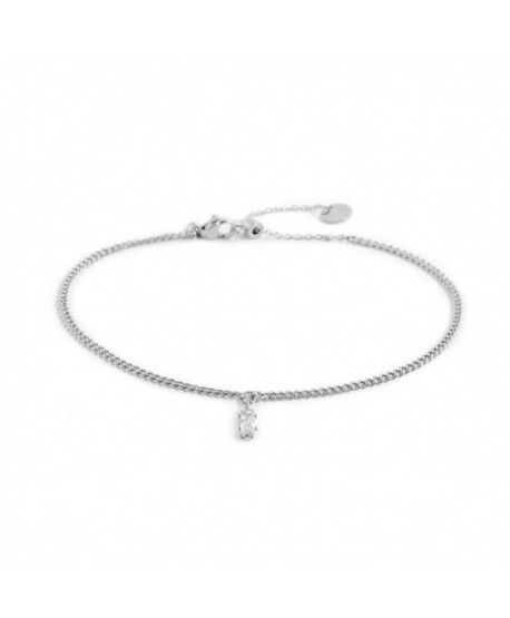 Cavigliera in acciaio con catena grumetta con cristallo baguette bianco. Lunghezza totale 25,8 cm, regolabile da 25,8 cm a 21 tramite cursore. Marlù logo tag presente all'estremità. Materiali: acciaio, cristallo Collezione: ANK05