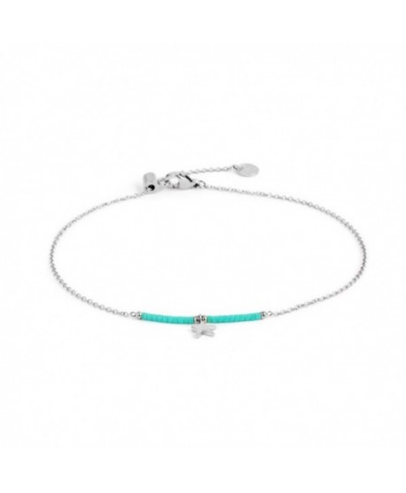 Cavigliera in acciaio con catena grumetta con pendeti in smalto turchese. Lunghezza totale 25,8 cm, regolabile tramite cursore da 25,8 cm a 21,3 cm. Marlù logo tag all'estremità. Materiali: acciaio, smalto Collezione: ANK04