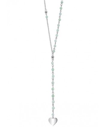 Collana lunga da donna Kidult in acciaio e perline con charm cuoricino e ciondolo a forma di cuore più grande con aforisma inciso.
