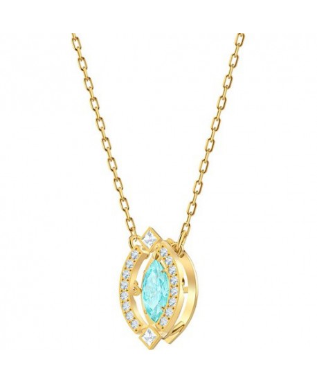 Collana Swarovski collezione Sparkling Dance placcata oro, ciondolo con cristalli bianchi fanno da cornice ad un cristallo azzurro.