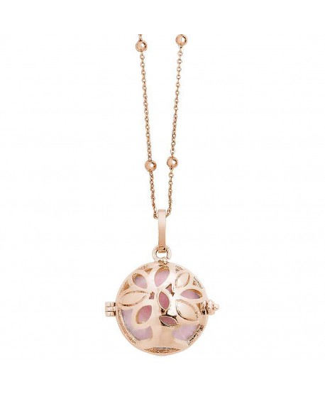 Collana Placcata Oro Rosa Con Scrigno Apribile, Decorato Da Un Albero Della Vita, Contenente Batuffoli Colorati Intercambiabili