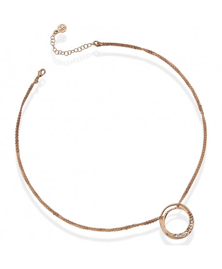 Collana Doppio Filo Placcata Oro Rosa Con Pendente Circolare Dall'Effetto Diamantato E Cristalli Swarovski Crystal.