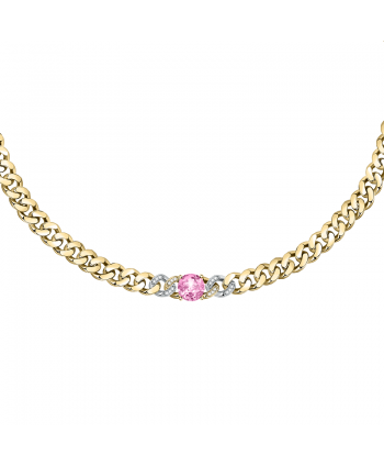 Collana Chiara Ferragni a catena in Rodio con maglia placcata in oro 18K e zirconi rosa.