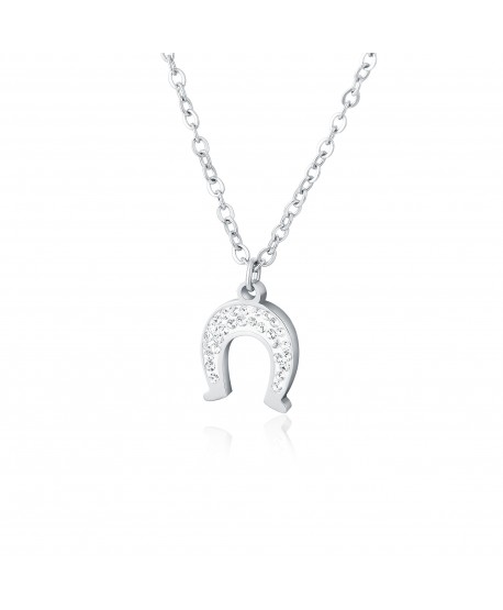 Girocollo da donna Kidult in acciaio e perline con ciondolo a forma di angelo con cristallo bianco centrale.