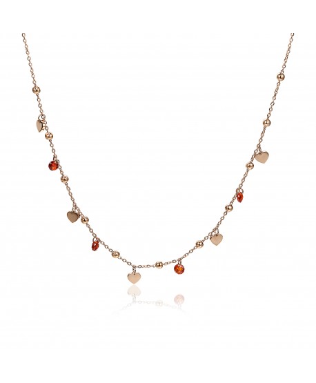 Collana da donna 2JEWELS Collezione Mix % Match composta da catene in acciaio 316 L rosato con pvd oro rosa e cristalli bianchi.