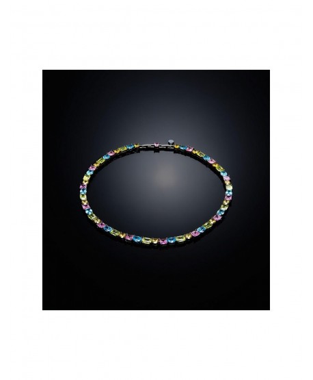 Collana Chiara Ferragni collezione Princess Rainbow placcatura pvd rodio realizzata con zirconi blu, rosa, gialli e verdi.