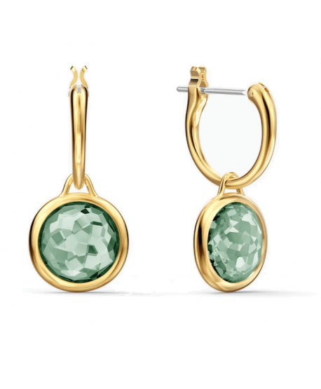 Orecchini Swarovski pendenti placcati oro con ciondolo circolare con cristallo verde.