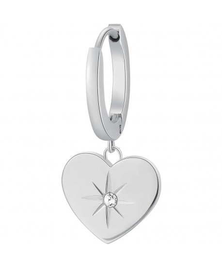 Mono orecchino Brosway Chakra a cerchio in acciaio con pendente a forma di cuore e zirconi bianchi.