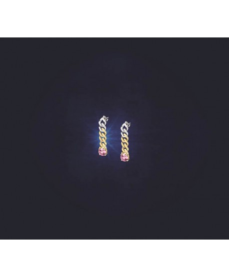 Orecchini Chiara Ferragni Chain pendenti a catena bicolore oro ed argento con cristalli rosa.