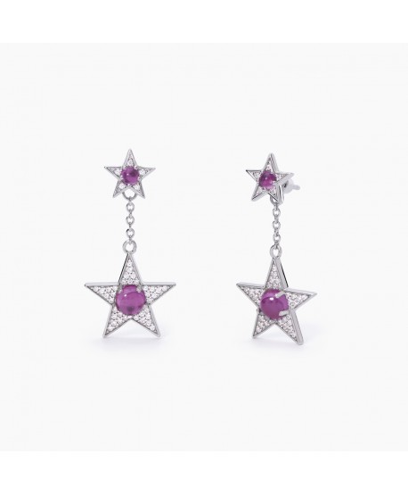 Orecchini argento 925/°°° rodiato con corindone sintetico #3 Ø 3.00 e 5.00 mm e zirconi bianchi Ø 1.00 mm