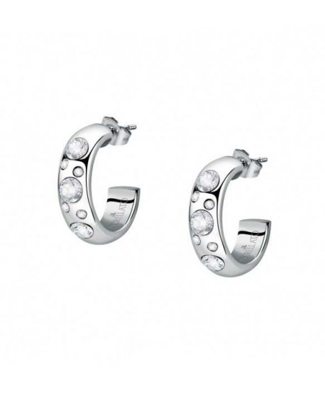 Orecchini Morellato, collezione Poetica, a cerchio in acciaio anallergico rodiato con cristalli bianchi.