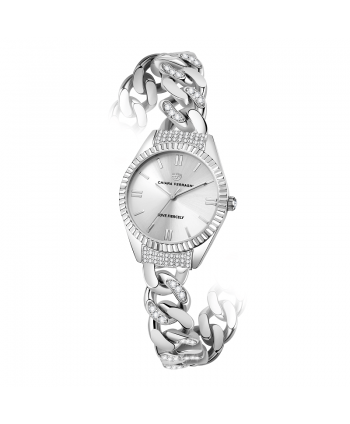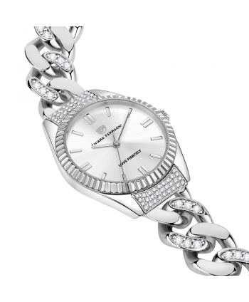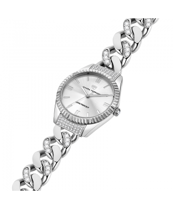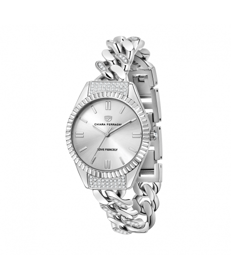 Orologio Chiara Ferragni Chain Capsule in acciaio con cinturino braccialato maglia a catena con cristalli bianchi, quadrante silver.