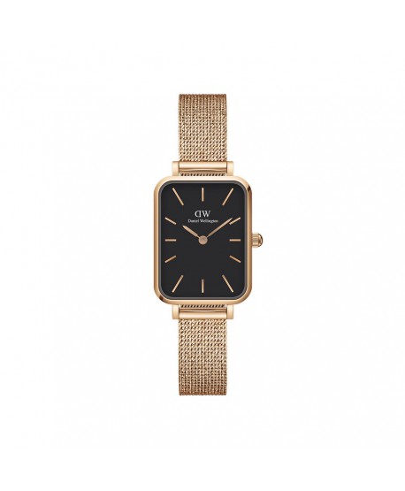 Orologio da donna Daniel Wellington Petite Ashfield con cinturino in acciaio nero maglia milano, cassa in acciaio oro rosa, quadrante nero.