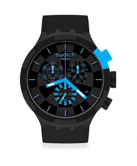 Orologio cronografo Swatch BIG BOLD CHECKPOINT BLUE con cassa di diametro 47 mm, spessore 14 mm, cinturino in silicone, resistente all'acqua 3 atm con movimento al quarzo.